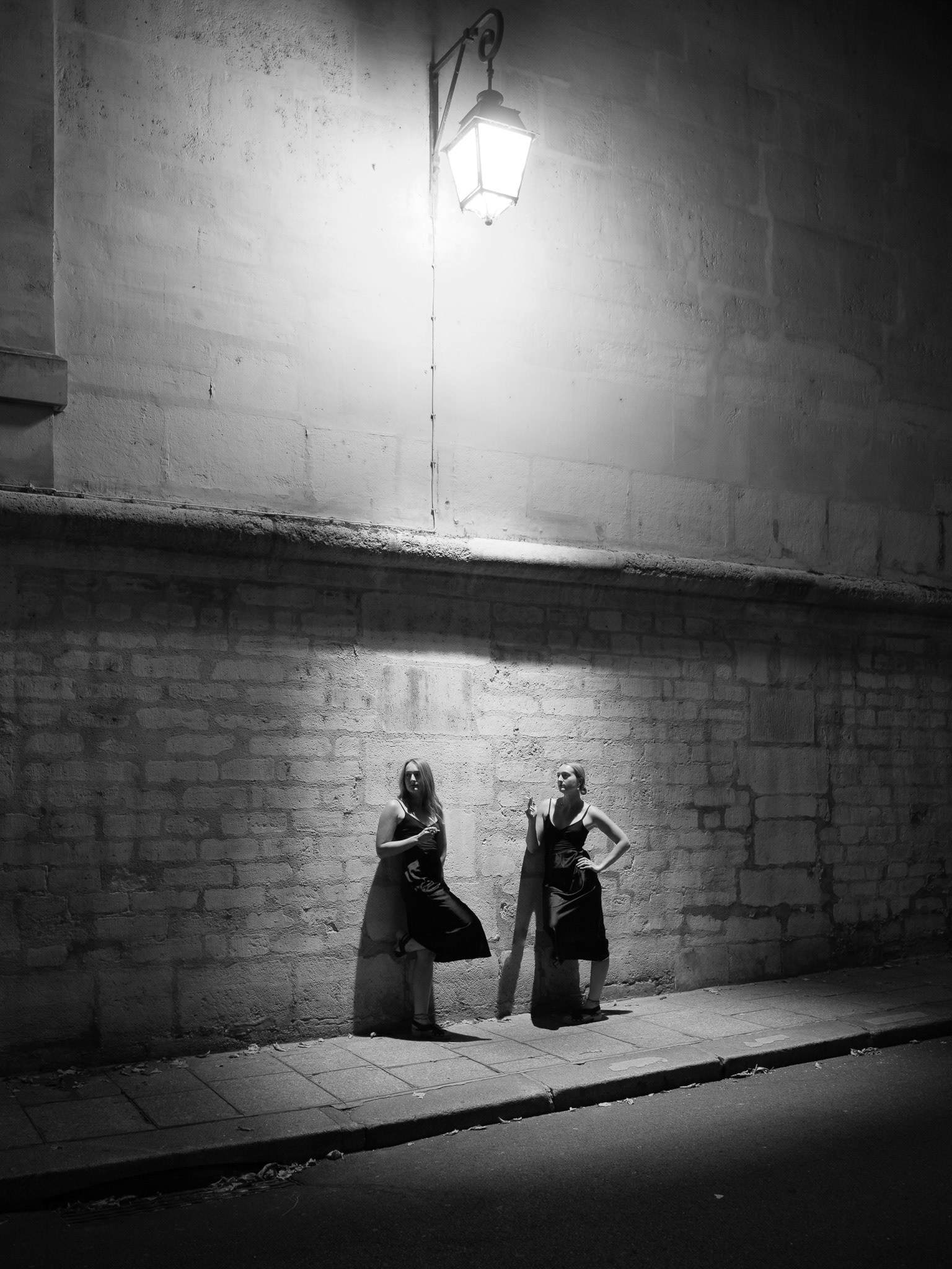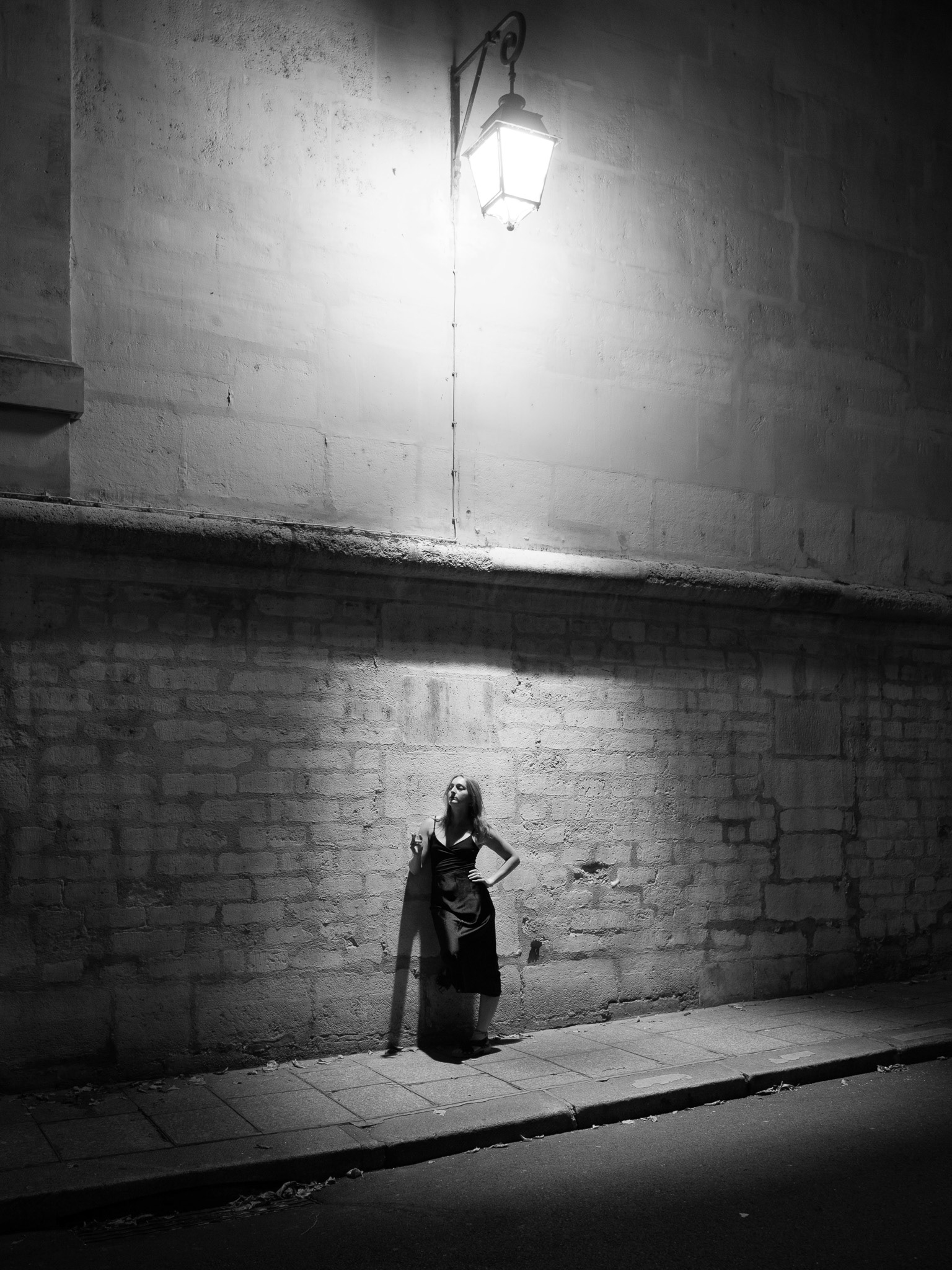 In der Arbeit 'Night Piece (Paris)' inszeniert sich die Künstlerin in einer Pariser Seitengasse unter dem Licht einer alten Straßenlaterne. Das Licht der Laterne schafft eine intime, fast theatralische Situation, in der Gegenwart und Vergangenheit ineinanderfließen. Der öffentliche Raum der Gasse wird zur Bühne einer inneren Szene. Die Ästhetik der 1920er Jahre dient dabei nicht als reine Kostümierung, sondern wirft Fragen nach Erinnerung, Identität und Selbstbild auf.
