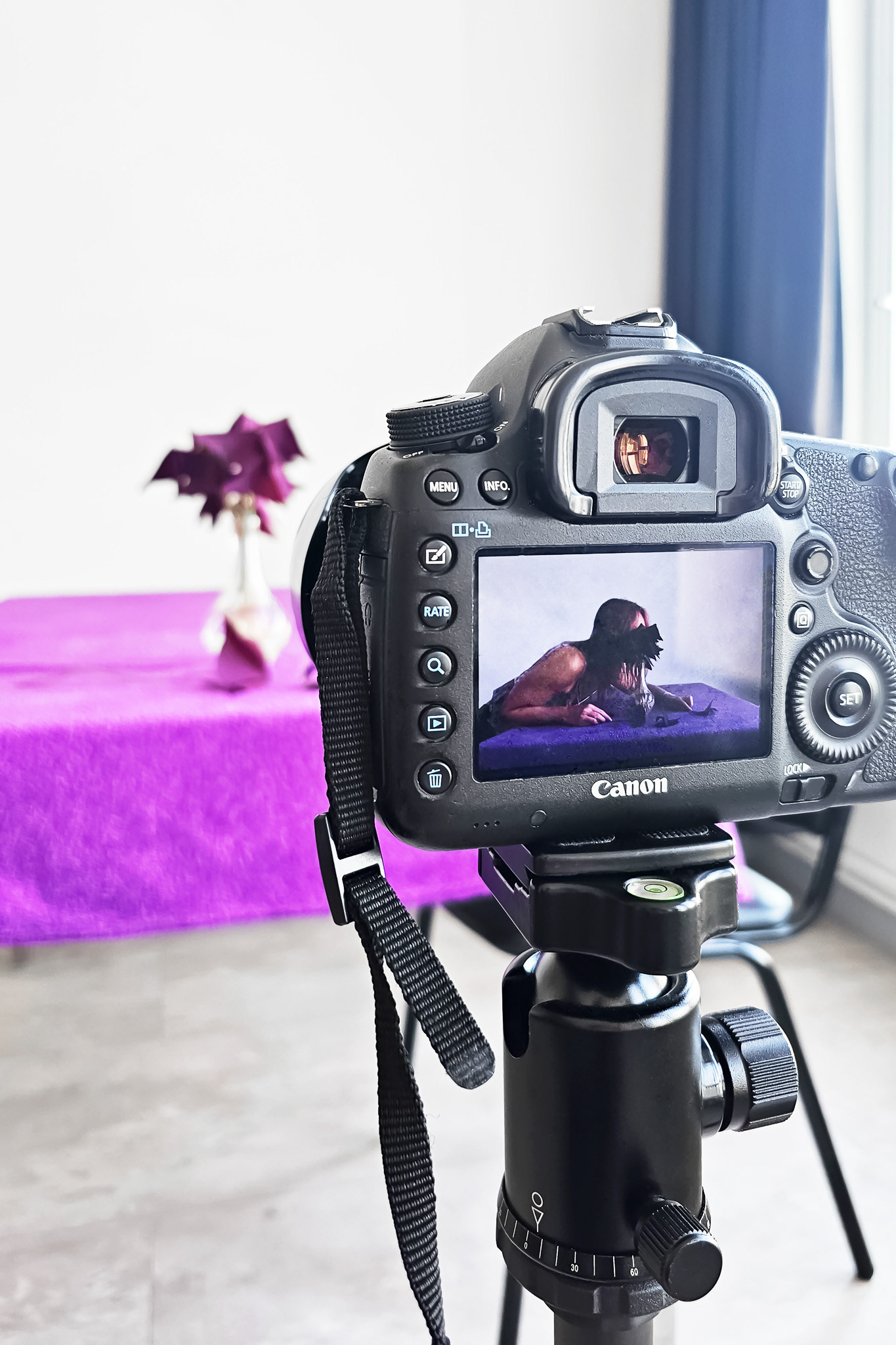 Eine Kamera richtet ihren Blick auf eine Inszenierung, während ihr eigenes Bild zum Motiv wird.